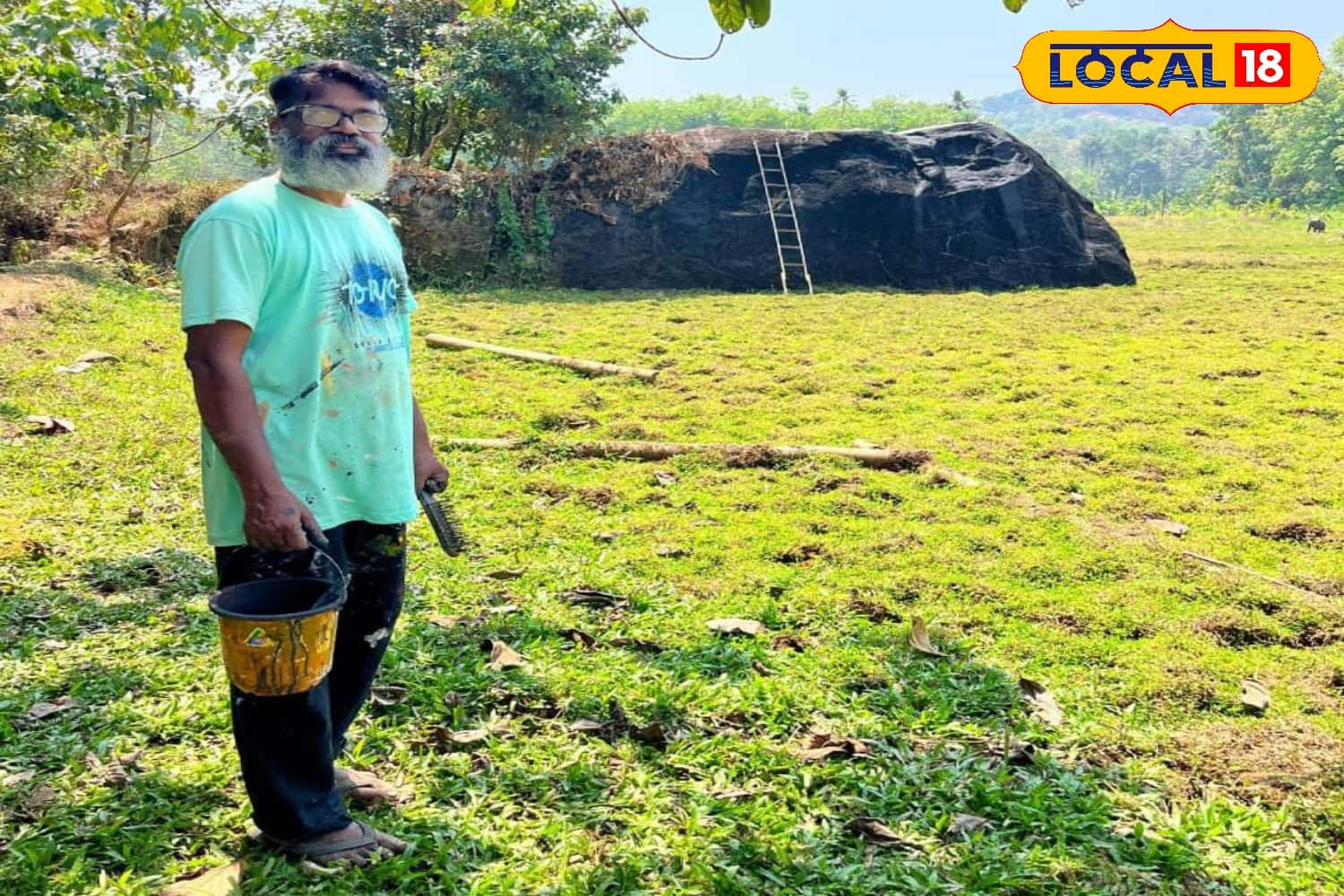 കല്ലിന് ചായം പകർന്നപ്പോൾ നാട്ടുകാർക്ക് കൗതുകമായി തൂലികയിൽ ജനിച്ച കരിമ്പാറ കൊമ്പൻ