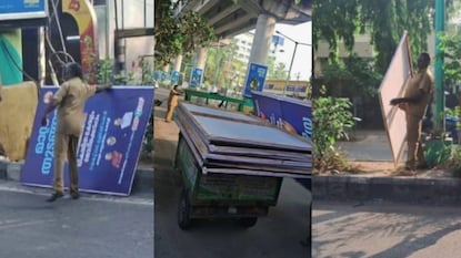 വാഹനം ഓടിക്കുന്ന ആളുകളുടെ ശ്രദ്ധ മാറുന്നെന്നും കാഴ്ച തടസമുണ്ടാകുന്നെന്നും വിമർശനങ്ങൾ ഉയർന്നിരുന്നു. ഇതിന്റെ പശ്ചാത്തലത്തിലാണ് നടപടി. ബിജെപിയുടെ എല്ലാ കൊടിതോരണങ്ങളും ബാനറുകളും നീക്കം ചെയ്തു.