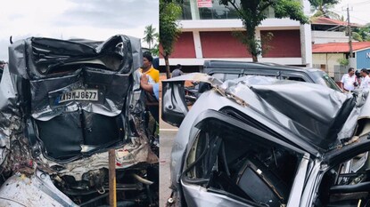 മംഗളുരുവിൽ കെഎസ്ആർടിസി ബസ്സും മിനി ലോറിയും കാറും കൂട്ടിയിടിച്ചു; കാർ പൂർണമായി തകർന്നു