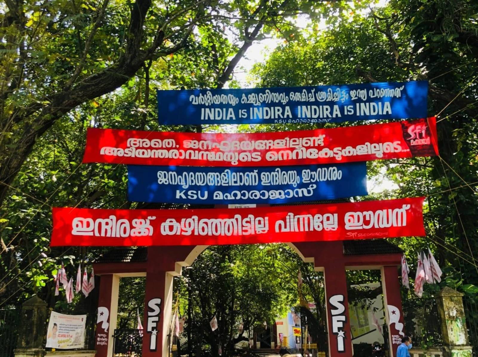 ഏതായാലും മഹാരാജാസ് കോളേജ് കവാടത്തിൽ ചുവപ്പും നീലയും ബാനറുകൾ ഒന്നിന് പുറകെ ഒന്നായി ഉയർന്നുകൊണ്ടേയിരിക്കുന്നു. 'ജനഹൃദയത്തിൽ ഉള്ളതുകൊണ്ടാണ്.1980ൽ rss-cpim സഖ്യത്തെ തോൽപ്പിച്ച് ഇന്ദിര ഭരണത്തിൽ തിരച്ചെത്തിയത്' എന്ന് കെ.എസ്.യു മഹാരാജാസ് എന്ന ഫേസ്ബുക്ക് പേജില് ബാനർ ചിത്രം പങ്കുവെച്ചുകൊണ്ട് കുറിച്ചിട്ടുണ്ട്.