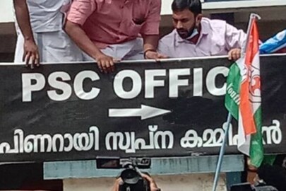 ‘പിണറായി സ്വപ്ന കമ്മിഷൻ’, പിഎസ്സി ഓഫിസിനു മുന്നിൽ ബോർഡ് സ്ഥാപിച്ച് കെ.എസ്.യു