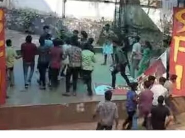 കോളേജിലെ സ്റ്റേജില് സ്ഥാപിച്ചിരുന്ന ബാനറുകള് നീക്കുന്നതിനെച്ചൊല്ലിയുണ്ടായ തര്ക്കമാണ് സംഘര്ഷത്തില് കലാശിച്ചത്.