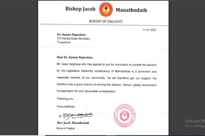 Also Read മണ്ണാർക്കാട് നിയമസഭാ മണ്ഡലത്തിൽ വ്യവസായിയെ സ്ഥാനാർഥിയാക്കണമെന്ന് കാനം രാജേന്ദ്രന് ബിഷപ്പിന്റെ കത്ത്.