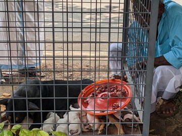 ഇപ്പോൾ മുക്കട്ട ജംഗ്ഷനിൽ ആണ് കൂടുള്ളത്. കൂട്ടിൽ കണ്ണ് തുറക്കാൻ പോലും ആകാത്ത 9 കുഞ്ഞുങ്ങൾ, അവയ്ക്ക് പാല് കൊടുത്ത് നാട്ടുകാർ പേരിടാതെ തന്നെ ഓമനിക്കുന്ന തെരുവ് പട്ടിയും. ബിസ്കറ്റും പാലും മാത്രമല്ല, ആട്ടിറച്ചി ചെറിയ കഷ്ണങ്ങളാക്കിയതും ഒരു പാത്രത്തിലാക്കി കൂട്ടിൽ വെച്ചിട്ടുണ്ട്. ആരെങ്കിലുമൊക്കെ ആയി അങ്ങാടിയിൽ എപ്പോഴും ഉണ്ടാകും പട്ടിക്കൂടിന് അടുത്ത് തന്നെ.