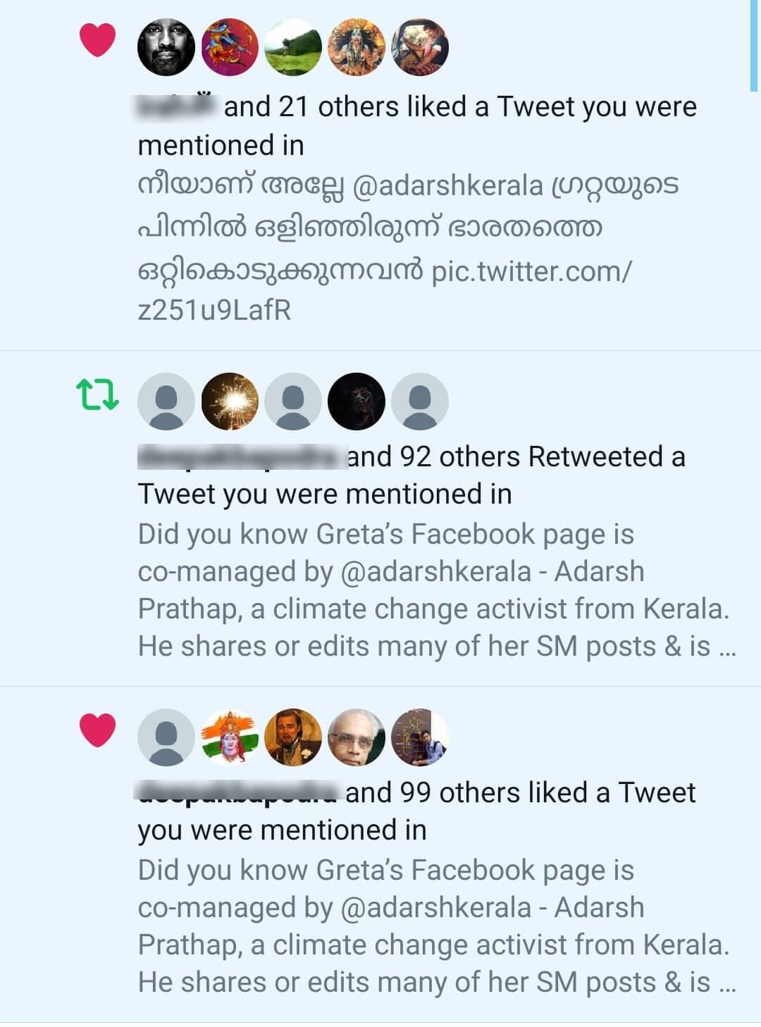 ''കാലാവസ്ഥാ വ്യതിയാനത്തെ കുറിച്ചുള്ള യു എൻ സമ്മേളനത്തിൽ വെച്ചാണ് ഗ്രേറ്റയെ പരിചയപ്പെടുന്നത്. അതിനുശേഷം ഫ്രേഡേഴ്സ് ഫോർ ഫ്യൂച്ചർ എന്ന പേരിൽ ലോകവ്യാപകായി കാലാവസ്ഥാ വ്യതിയാനത്തിരെ പ്രതിഷേധങ്ങൾ നടക്കുന്നുണ്ടായിരുന്നു. ഈ ഘട്ടത്തിൽ അവരുടെ അവരുടെ അഭിപ്രായം പോസ്റ്റ് ചെയ്യുന്നതിനാണ് ഫേസ്ബുക്ക് പേജ് തുടങ്ങിയത്. ഇപ്പോൾ പേജിലെ ഫോളോവേഴ്സിന്റെ എണ്ണം വർധിച്ചു. ഗ്രേറ്റയുടെ പോസ്റ്റ് റീ പോസ്റ്റ് ചെയ്യുന്നത് ഇപ്പോഴും തുടരുന്നു. കാലാവസ്ഥാ വ്യതിയാനത്തിന്റെ സന്ദേശം ലോകം മുഴുവൻ എത്തിക്കുക എന്നുള്ളതാണ് പ്രധാന ഉദ്ദേശ്യം. ബാക്കി കാര്യങ്ങളിലുള്ള ഗ്രേറ്റയുടെ അഭിപ്രായം വ്യക്തിപരമാണ്. തനിക്ക് അതിൽ യാതൊരു പങ്കുമില്ല''- ആദർഷ് ന്യൂസ് 18നോട് പറഞ്ഞു.