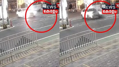 ട്രിവാൻഡ്രം ക്ലബിൽ നിന്നും പതിയേ പുറത്തിറങ്ങുന്ന കാറിൽ അതിവേഗം പാഞ്ഞുവന്ന ബൈക്ക് ഇടിക്കുന്നതാണ് ദൃശ്യങ്ങളിൽ കാണാൻ കഴിയുന്നത്. ഇടിയുടെ ആഘാതത്തിൽ വാഹനം ഓടിച്ച യുവാക്കൾ റോഡിലേക്ക് തെറിച്ച് വീഴുന്നതും ബൈക്ക് മറ്റൊരു വശത്തേക്ക് നീങ്ങുന്നതും ദൃശ്യങ്ങളിൽ കാണാം.