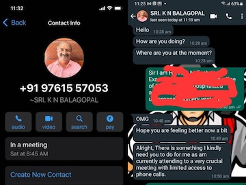 84099 05089 എന്ന നമ്പറിൽ നിന്നാണ് വ്യവസായ മന്ത്രിയുടെ ഫോട്ടോ ഡി.പി ആയി നൽകി സന്ദേശങ്ങൾ അയച്ചത്. വ്യവസായ വകുപ്പിലെ ഉദ്യോഗസ്ഥർക്ക് സന്ദേശങ്ങൾ ലഭിച്ചപ്പോഴാണ് തട്ടിപ്പ് നടക്കുന്നതായി ബോധ്യപ്പെട്ടത്. 97615 57053 എന്ന നമ്പറിൽ നിന്നാണ് ധനമന്ത്രി കെ.എൻ.ബാലഗോപാലിന്റെ ഡിപിയുള്ള വാട്സ് ആപ്' അക്കൗണ്ടിന്റെ പ്രവർത്തനം.
