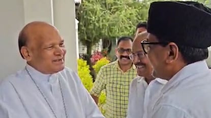 മുനമ്പം വഖഫ് ഭൂമി: പാണക്കാട് സാദിഖലി തങ്ങളും കുഞ്ഞാലിക്കുട്ടിയും വരാപ്പുഴയിലെത്തി അതിരൂപത ബിഷപ്പുമായി ചർച്ച നടത്തി
