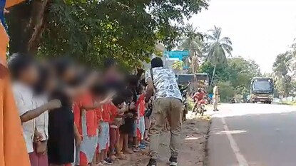 മലപ്പുറം എടപ്പാൾ തുയ്യം ഗവ എൽ പി സ്കൂളിലെ കുട്ടികളെയാണ് റോഡരികിൽ ദീർഘനേരം നിർത്തിയത്