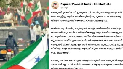 രാജ്യത്തിന്റെ നിയമം അനുസരിക്കുന്ന പൗരന്മാർ എന്ന നിലയിൽ തീരുമാനം അംഗീകരിക്കുന്നു; നിരോധനത്തിൽ പോപുലർ ഫ്രണ്ട്