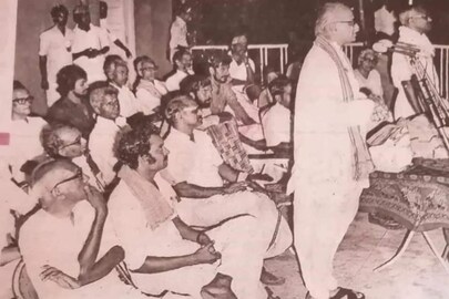 1977 മാര്ച്ച് 3 ന് സിപിഎം സഥാനാര്ഥിയായിരുന്നു ടി ശിവദാസമേനോന്റെ തെരഞ്ഞെടുപ്പ് കണ്വെന്ഷന് പാലക്കാട് ഗൗഡർ തീയറ്ററിൽ എല് കെ അദ്വാനി ഉദ്ഘാടനം ചെയ്യുന്നതിന്റെ ചിത്രം സഹിതമായിരുന്നു വാര്ത്ത. അദ്വാനിയുടെ പ്രസംഗം തര്ജ്ജമ ചെയ്യുന്ന ഒ രാജഗോപാലും (നേമം എംഎല്എ) ചിത്രത്തിലുണ്ട്.