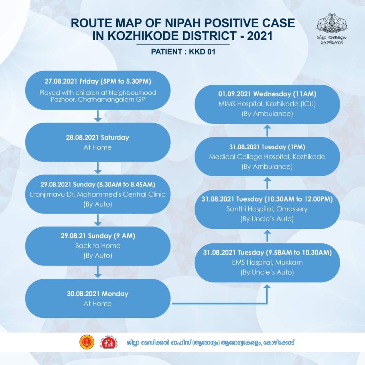 Nipah | നിപ ബാധിച്ച് മരിച്ച കുട്ടിയുടെ റൂട്ട് മാപ്പ് പുറത്തിറക്കി; ഓഗസ്റ്റ് 27ന് പരിസരത്തെ കുട്ടികൾക്കൊപ്പം കളിച്ചു