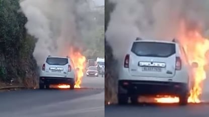 ഇടുക്കി കുട്ടിക്കാനത്ത് ഓടിക്കൊണ്ടിരുന്ന കാറിന് തീ പിടിച്ചു