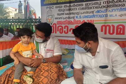 ഏതായാലും സമരപ്പന്തലിൽ അച്ഛന് പിന്തുണയുമായി എത്തിയ കുഞ്ഞു മൽഹാറിന് സോഷ്യൽ മീഡിയയിലും വലിയ സ്വീകരണമാണ് ലഭിച്ചത്. മഞ്ഞ നിറമുള്ള ടി ഷർട്ടും ചാരനിറമുള്ള പാന്റും ഷൂസും ധരിച്ചാണ് മൽഹാർ എത്തിയത്. ശബരിനാഥന്റെ മടിയിൽ ഇരിക്കുന്ന കുഞ്ഞു മൽഹാർ പക്ഷേ മാസ്ക് വച്ചിട്ടില്ല. അതിനെതിരെ ഇതിനകം കമന്റ് ബോക്സിൽ പ്രതിഷേധം ഉയർന്നു കഴിഞ്ഞു. മൽഹാറിനെ ചിരിച്ചു കൊണ്ട് നോക്കിയിരിക്കുന്ന ഷാഫി പറമ്പിൽ എം എൽ എയെയും ചിത്രത്തിൽ കാണാം.