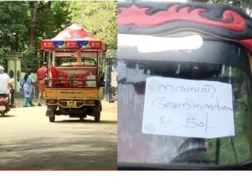 ഗിരീഷ് എന്ന ഓട്ടോ ഡ്രൈവറാണ് തന്റെ വാഹനത്തിന് മുന്നിൽ സ്റ്റിക്കർ പതിച്ചത്. ഇന്ന് ഞായറാഴ്ച്ചയായതിനാൽ എത്തുന്ന സന്ദർശകരുടെ എണ്ണവും കൂടി. ഇന്ന് മാത്രം തനിക്ക് 1200 രൂപയുടെ ഓട്ടം കിട്ടിയെന്നാണ് ഗിരീഷ് പറയുന്നത്.