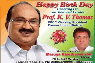 കൊച്ചി: പതിവ് തെറ്റാതെ ഇന്നും ദേശീയ ദിനപത്രങ്ങളിൽ കോൺഗ്രസ് നേതാവും മുൻ കേന്ദ്ര മന്ത്രിയുമായ കെ.വി തോമസിന് ജന്മദിനാശംസകൾ നേർന്നു കൊണ്ടുള്ള പരസ്യം പ്രത്യക്ഷപ്പെട്ടു. പക്ഷെ ആശംസകൾ നേർന്ന ആ സുഹൃത്ത് ഇപ്പോൾ ജീവനോടെയില്ലെന്ന ദുഖവാർത്ത പങ്കുവയ്ക്കുകയാണ് കെ.വി തോമസ്. വര്ഷങ്ങളായി താന് തുടര്ന്നുവരുന്ന ആശംസാ പരസ്യം ഇത്തവണയും പത്രത്തില് വരുമെന്ന് ഉറപ്പാക്കിയ ശേഷമാണ് ഹൈദരാബാദ് സ്വദേശിയായ മെരുകാ രാജേശ്വ റാവു മരണത്തിന് കീഴടങ്ങിയത്. വ്യാഴാഴ്ചയാണ് 48-കാരനായ കോണ്ഗ്രസ് നേതാവ് മെരുകാ രാജേശ്വ റാവു കോവിഡ് ബാധിച്ച് മരിച്ചതെന്ന് കെ.വി തോമസ് ഫേസ്ബുക്കിൽ കുറിച്ചു.