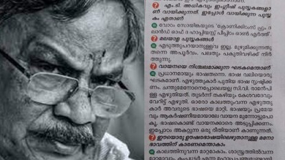 "എം ടി പറഞ്ഞത് ഒരു പരിധി വരെ ശരിയാണ് എന്ന പക്ഷക്കാരനാണ് ഞാൻ… വേഗത്തിൽ വായിച്ച് തീർന്ന് അതിലും വേഗത്തിൽ മറക്കുന്ന പുസ്തകങ്ങളാണ് അടുത്തിടെ വായിച്ച പുതിയ മലയാളം പുസ്തകങ്ങൾ പലതും… അതേ സമയം ഒരു കൊല്ലം മുൻപ് വായിച്ച ചില പുസ്തകങ്ങൾ ഇപ്പോഴും മനസ്സിലുണ്ട്… വായനയിൽ ശിശുവായ എനിക്ക് പോലും അങ്ങനെ തോന്നിയെങ്കിൽ എം ടി അങ്ങനെ പറഞ്ഞതിൽ എന്ത് കുറ്റം പറയാനാവും?"