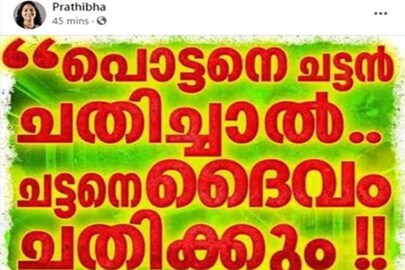 'പൊട്ടനെ ചട്ടന് ചതിച്ചാല് ചട്ടനെ ദൈവം ചതിക്കും' എന്നായിരുന്നു ആദ്യം പ്രതിഭ ഇട്ട ഫേസ്ബുക്ക് പോസ്റ്റ്. ഇത് ജി സുധാകരനെതിരെയുള്ള ഒളിയമ്പാണെന്ന കമന്റുകള് വന്നതോടെ പോസ്റ്റ് എംഎല്എ ഫേസ്ബുക്കില് നിന്നും നീക്കം ചെയ്തു. തൊട്ടു പിന്നാലെ തന്റെ അക്കൗണ്ട് ആരോ ഹാക്ക് ചെയ്തെന്ന വിശദീകരണവും എംഎല്എ ഫേസ്ബുക്കിലൂടെ നല്കി. തന്റെ അക്കൗണ്ട് ആരോ ഹാക്ക് ചെയ്തതാണെന്നും ദുര്വ്യാഖ്യാനം ഒഴിവാക്കണമെന്നുമായിരുന്നു പ്രതിഭ അറിയിച്ചത്. എന്നാല് മിനുട്ടുകള്ക്കുള്ളില് ഈ പോസ്റ്റും കാണാനില്ല. ഇതോടെ നവമാധ്യമങ്ങളില് ചര്ച്ച ചൂടു പിടിച്ചു.