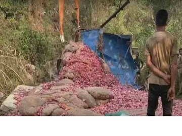 കോഴിക്കോട് നിന്ന് സവാളയുമായി ചാലക്കുടിയിലേക്കു പോകുകയായിരുന്ന ലോറിയാണ് മറിഞ്ഞത്