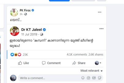 'ഇതായിരുന്നോ കമ്പനി കാണാനിരുന്ന യൂത്ത് ലീഗിന്റെ യുദ്ധം' 2019ലെ ജലീലിന്റെ ചോദ്യത്തിന് ഇന്ന് 'യെസ്' എന്ന മറുപടിയുമായി പി കെ ഫിറോസ്