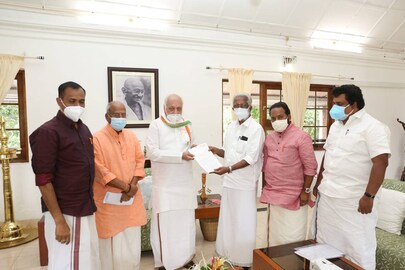 ബിജെപി നേതാക്കളായ ഒ രാജഗോപാല്, കുമ്മനം രാജശേഖരന്, സംസ്ഥാന ജനറല് സെക്രട്ടറി പി സുധീര്, ജില്ല അധ്യക്ഷന് വി വി രാജേഷ്, സംസ്ഥാന സെക്രട്ടറി എസ് സുരേഷ് എന്നിവരാണ് രാജ്ഭവനിലെത്തി നിവേദനം നല്കിയത്.
