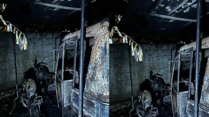 ഓട്ടോറിക്ഷയും രണ്ട് ബൈക്കുകളും ഒരു സ്കൂട്ടിയുമാണ് കത്തിനശിച്ചത്