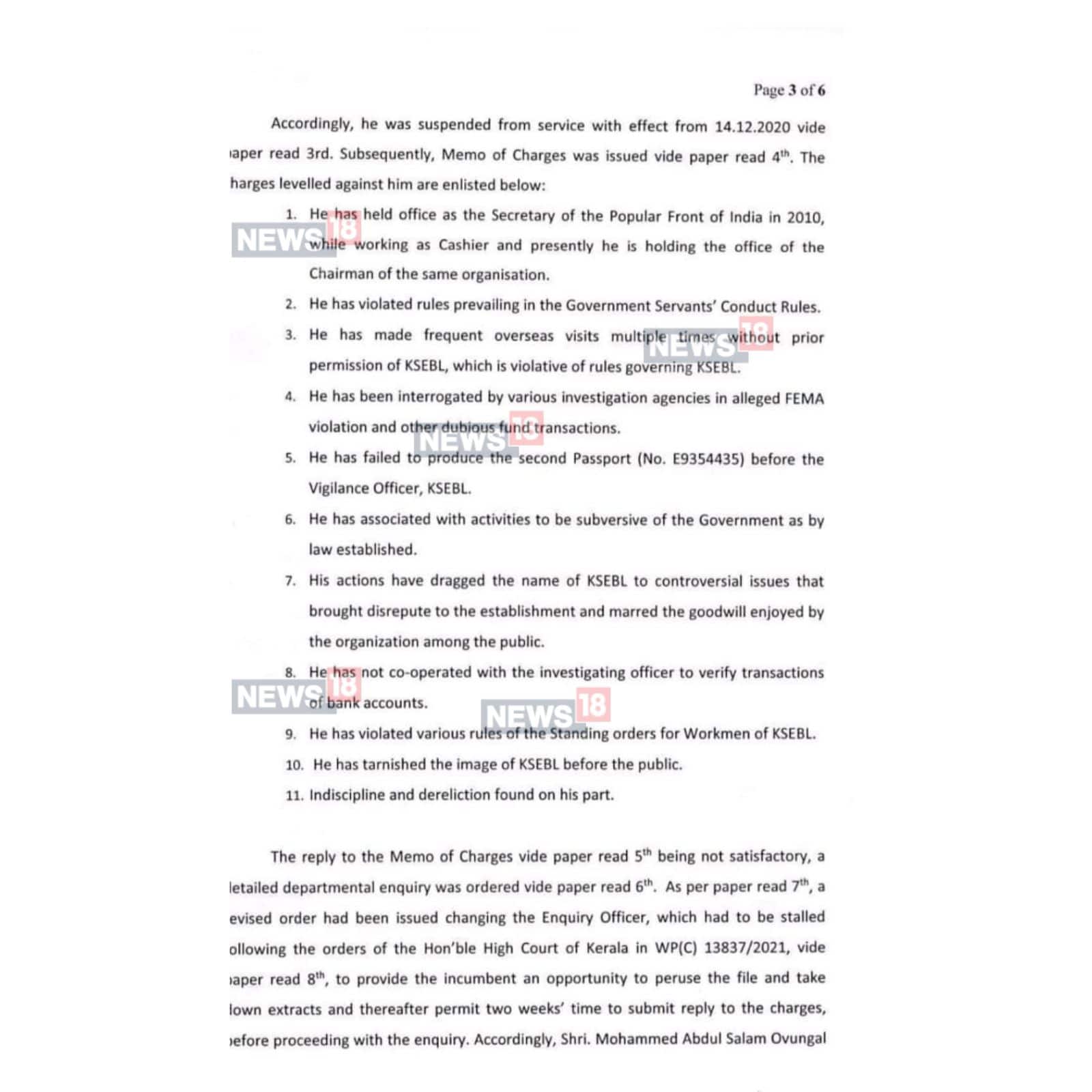 PFI| രണ്ട് പാസ്പോർട്ട്, അനുവാദമില്ലാതെ വിദേശയാത്ര, ബാങ്ക് വിവരങ്ങൾ നൽകിയില്ല; OMA സലാമിനെതിരെ KSEB ഉത്തരവ്