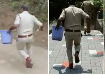 ബക്കറ്റുമായി ജീപ്പിലേക്ക് പൊലീസുകാരൻ ഓടുകയായിരുന്നു. ഇതിന്റെ ദൃശ്യങ്ങൾ ഏവരുടെയും ഹൃദയം കവരുന്നതാണ്