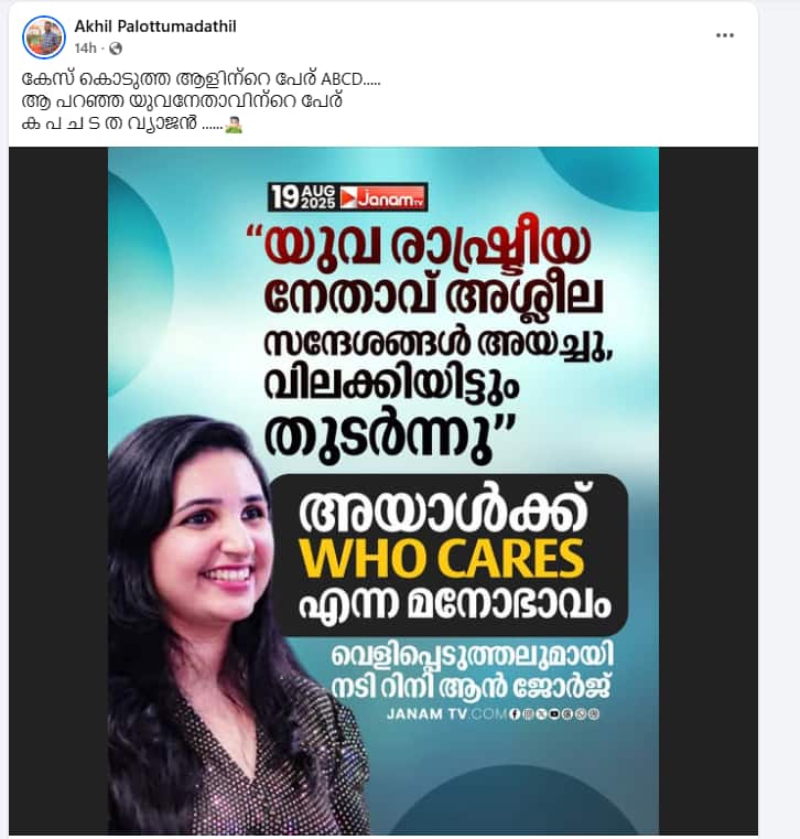 ആ പറഞ്ഞ യുവനേതാവിന്റെ പേര് ക പ ച ട ത വ്യാജൻ എന്നാണ് അഖിൽ കുറിച്ചത്