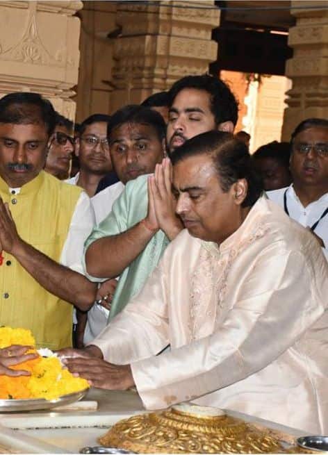 Reliance ചെയർമാൻ മുകേഷ് അംബാനിയും മകൻ ആകാശും മഹാശിവരാത്രിയിൽ സോമനാഥക്ഷേത്രത്തിൽ ദർശനം നടത്തി