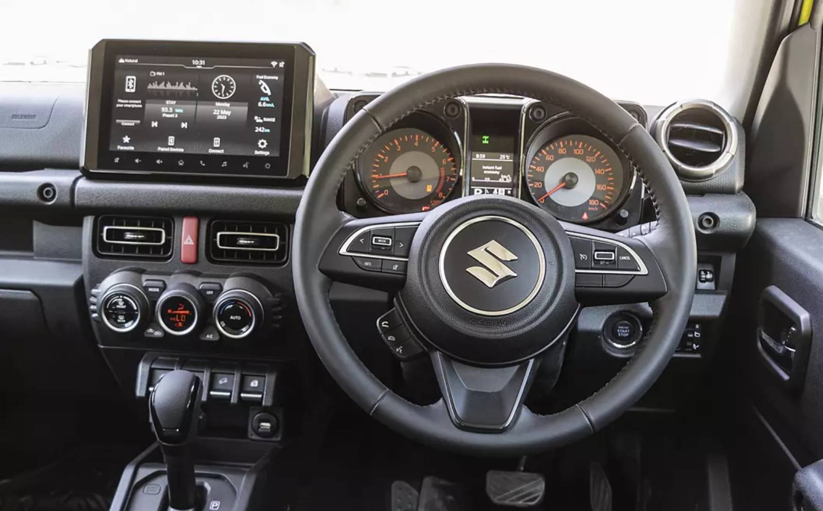 ഓഫ് റോഡ് പ്രേമികൾക്ക് പ്രിയങ്കരമായി രീതിയില് നിർമ്മിച്ചിരിക്കുന്നതിനാല് കുറച്ച് പൊക്കം തോന്നും. ആറു എയർ ബാഗുകളാണ് യാത്രക്കാരുടെ സുരക്ഷയ്ക്കായി ഒരുക്കിയിരിക്കുന്നത്. നിറങ്ങളുടെ കാര്യത്തിൽ ജിംനി അതിന്റെ ആകർഷകമായ ഓപ്ഷനുകൾ മുന്നോട്ടുവെക്കുന്നു. ഡീലർഷിപ്പുകൾ അനുസരിച്ച്, എസ്യുവിയുടെ ഏറ്റവും ജനപ്രിയമായ കളർ ചോയ്സുകളായി ബ്ലൂഷ് ബ്ലാക്ക്, കൈനറ്റിക് യെല്ലോ, പേൾ ആർട്ടിക് വൈറ്റ് എന്നിവയുണ്ട്.