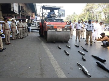 Modified Silencer | പിടിച്ചെടുത്ത നൂറോളം മോഡിഫൈഡ് സൈലൻസറുകൾ ബുൾഡോസർ ഉപയോഗിച്ച് തകർത്ത് മുംബൈ ട്രാഫിക് പോലീസ്