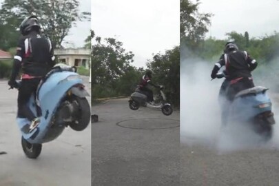 വീഡിയോയില്, സ്കൂട്ടര് ജംപിങ്ങ്, സ്കിഡിങ്ങ്, തുടങ്ങി പല അഭ്യാസങ്ങളാണ് ഈ സ്കൂട്ടര് ഉപയോഗിച്ച് സ്റ്റണ്ടര്മാര് ചെയ്യുന്നത്.