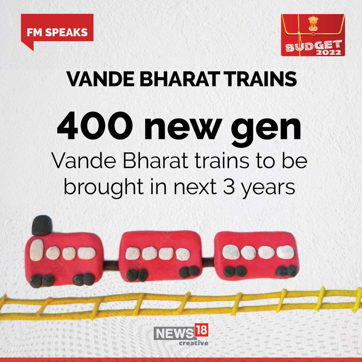 400 വന്ദേഭാരത് ട്രെയിനുകൾ വരും വർഷങ്ങളിൽ പുറത്തിറക്കുമെന്ന ബജറ്റ് പ്രഖ്യാപനം. തദ്ദേശീയമായി വികസിപ്പിച്ച വന്ദേ ഭാരത് ട്രെയിനുകളുടെ ഉൽപാദനം കൂട്ടാനുള്ള റെയിൽവേ മന്ത്രാലയത്തിന്റെ തീരുമാനത്തിനാണ് ബജറ്റ് പച്ചക്കൊടി വീശിയിരിക്കുന്നത്. ഇഎംയു ട്രെയിൻ സെറ്റുകളായ വന്ദേ ഭാരത് ട്രെയിനുകൾ രാജ്യത്തെ വേഗം കൂടിയ ട്രെയിനുകളാണ്. നിലവിൽ 2 ട്രെയിനുകളാണ് സർവീസ് നടത്തുന്നത്. ഡൽഹിയിൽ നിന്നു വാരണാസിയിലേക്കും കത്രയിലേക്കും. ആസാദി കി അമൃത് മഹോൽസവിന്റെ ഭാഗമായി 75 ആഴ്ചകൾ കൊണ്ടു 75 വന്ദേ ഭാരത് ട്രെയിനുകൾ പുറത്തിറക്കുമെന്ന പ്രധാനമന്ത്രി നരേന്ദ്ര മോദിയുടെ പ്രഖ്യാപനത്തിന്റെ തുടർച്ചയാണ് 400 ട്രെയിനുകൾ എന്ന പുതിയ ലക്ഷ്യം പ്രഖ്യാപിച്ചിരിക്കുന്നത്.