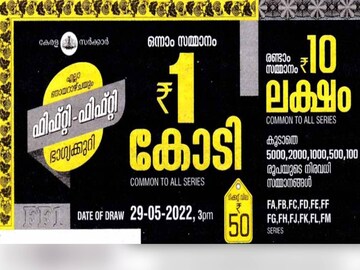 എല്ലാ ഞായറാഴ്ചയും നറുക്കെടുക്കുന്ന ഫിഫ്റ്റി- ഫിഫ്റ്റി ലോട്ടറിയുടെ വില 50 രൂപയാണ്.