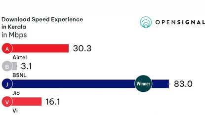 കേരളത്തിൽ 83 എംബിപിഎസ് വേഗതയോടെ ഡൗൺലോഡ് സ്പീഡിൽ ജിയോ മികവ് പുലർത്തി