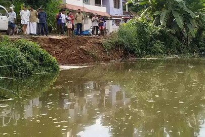 തീരം ഇടിഞ്ഞ് മീനച്ചിലാറ്റിലേക്ക് വീണ ടോറസ് ലോറിയെ 'കാണാനില്ല'