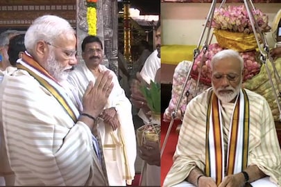 രാവിലെ 10.25ഓടെയാണ് പ്രധാനമന്ത്രിയുടെ ക്ഷേത്രദര്ശനം ആരംഭിച്ചത്. ഗുരുവായൂര് ശ്രീവത്സം ഗസ്റ്റ് ഹൗസിലെ വിശ്രമത്തിന് ശേഷം ക്ഷേത്രത്തിലെത്തിയ അദ്ദേഹത്തെ കിഴക്കേഗോപുരകവാടത്തില് കീഴ്ശാന്തിമാര് പൂര്ണകുംഭം നല്കി എതിരേറ്റു. അരമണിക്കൂറോളം ക്ഷേത്രത്തിനകത്ത് ചെലവഴിച്ച അദ്ദേഹം ഉപദേവന്മാരെ തൊഴുത്, ചുറ്റമ്പലപ്രദക്ഷിണം കഴിഞ്ഞ് താമരപ്പൂക്കള്കൊണ്ട് തുലാഭാരം വഴിപാടും നടത്തി. കണ്ണനെ തൊഴുത് സോപാനപ്പടിയില് കാണിക്ക സമര്പ്പിച്ചു. കദളിക്കുലയും മഞ്ഞപ്പട്ടും നെയ്യും സമര്പ്പിച്ചു.