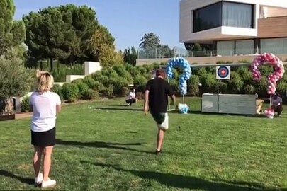 വീടിനു പുറത്ത് നീല നിറത്തിലും പിങ്ക് നിറത്തിലുമുള്ള ബലൂണുകള് സജ്ജീകരിച്ച് ഫു്ബോള് ഉപയോഗിച്ചായിരുന്നു താരം തനിക്ക് ജനിക്കാന് പോകുന്നത് ആണ്കുട്ടിയാണെന്ന് പ്രവചിച്ചത്. നീല നിറം ആണ്കുഞ്ഞിനെയും പിങ്ക് നിറം പെണ്കുഞ്ഞിനെയുമായിരുന്നു സൂചിപ്പിക്കുന്നത്. രണ്ടു സൈഡിലും ഇരു നിറത്തിലുള്ള ബലൂണുകള് ചോദ്യചിഹ്നമായി വയ്ക്കുകയും നടുവില് പന്ത് കൊള്ളിക്കേണ്ട പോയിന്റും താഴെയൊരു ബോക്സും സജ്ജീകരിച്ചായിരുന്നു പ്രവചനം.