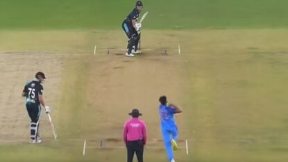 അഹമ്മദാബാദ്: വേഗത കൊണ്ട് എതിർ ബാറ്റർമാർക്ക് പേടിസ്വപ്നമായി മാറുകയാണ് ഇന്ത്യയുടെ പേസർ ഉമ്രാൻ മാലിക്. 150 കിലോമീറ്റർ വേഗതയിൽ പന്തെറിയാൻ ഉമ്രാൻ എത്രത്തോളം അപകടകാരിയാണെന്നതിന് തെളിവായി മാറുകയാണ് കഴിഞ്ഞ ദിവസം ന്യൂസിലാൻഡിനെതിരായ ടി20 മത്സരത്തിലെ ഒരു വിക്കറ്റ്.