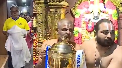 ചെന്നൈ സൂപ്പര് കിങ്സ് നേടിയ ഐപിഎല് കിരീടവുമായി നില്ക്കുന്ന തിരുപ്പതിക്ഷേത്രത്തിലെ പൂജാരിമാരുടെ ചിത്രങ്ങള് സമൂഹമാധ്യമങ്ങളില് വൈറല്