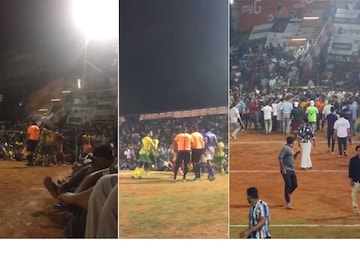 പൊലീസ് സ്ഥലത്തില്ലായിരുന്നു. ഇരു വിഭാഗവും ഓരോ ഗോള് വീതമാണ് അടിച്ചത്. കാണികള് കളത്തിലറിങ്ങിയതിനാല് പനാല്ട്ടി ഷൂട്ടൗട്ട് നടത്താനും കഴിഞ്ഞില്ല. തുടര്ന്ന് ടോസിട്ടതില് റോയല് ട്രാവെല്സ് കോഴിക്കോട് വിജയിച്ചു.