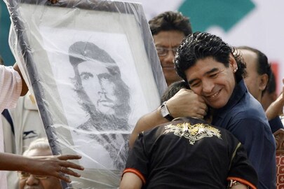നവലിബറൽ നയങ്ങൾക്കെതിരായ പോരാട്ടങ്ങൾക്ക് എന്നും പിന്തുണ നൽകിയ കാൽപന്തുകളിയിലെ ദൈവം ബൊളീവിയൻ പ്രസിഡന്റായ ആദ്യ റെഡ് ഇന്ത്യൻ വംശജൻ ഇവോ മോറല്സിനെയും ബ്രസീലിയന് ഇടതുപക്ഷ പ്രസിഡന്റായിരുന്ന ലുല ഡ സില്വയെയും സന്ദര്ശിച്ചു പിന്തുണ പ്രഖ്യാപിച്ചു.