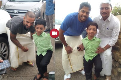 തിരുവനന്തപുരം: ഇന്ത്യാ വിന്‍ഡീസ് അവസാന ഏകദിനത്തിനായി താരങള്‍ തിരുവനന്തപുരത്തെത്തിയപ്പോള്‍ പ്രിയ താരങ്ങളെ കാണാന്‍ കോഴിക്കോട് നിന്നൊരു കുഞ്ഞ് ആരാധകനെത്തി. ജന്മനാ ഇരുകൈകളും ഇല്ലാത്ത കോഴിക്കോട്ട് സ്വദേശി മൊഹമ്മദ് ആസിമാണ് തിരുവനന്തപുരത്ത് താരങ്ങളെ കാണാന്‍ എത്തിയത്.
