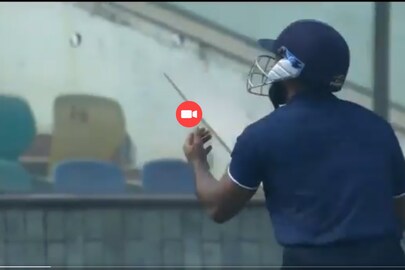 ന്യൂഡല്ഹി: ക്രിക്കറ്റില് ബാറ്റ്സ്മാന്മാര്ക്ക് ഏറ്റവും പ്രിയപ്പെട്ടത് അവരുടെ ബാറ്റ് തന്നെയാണ്. ബാറ്റിങ്ങിനിറങ്ങുമ്പോള് താരങ്ങള് പാഡും ഗ്ലൗസും ഹെല്മറ്റും ധരിച്ചിരിക്കും. ചിലസമയങ്ങളിലൊക്കെ ഹെല്മറ്റിനു പകരം തൊപ്പി ധരിച്ചും താരങ്ങള് കളത്തിലിറങ്ങാറുണ്ട്. എന്നാല് ക്രിക്കറ്റ് ലോകത്ത് തികച്ചും അസാധാരണവും അതിനേക്കാള് രസകരവുമായ നിമിഷത്തിനാണ് ഇന്ന് ദേവ്ധര് ട്രോഫിയില് ഇന്ത്യന് എ താരം ബാറ്റിങ്ങിനിറങ്ങുമ്പോള് സംഭവിച്ചത്.