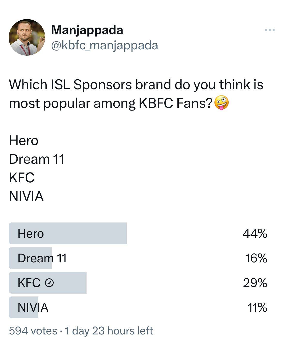കൊച്ചി: വിവാദങ്ങൾ കത്തിനിൽക്കുന്ന ഈ വേളയിൽ കേരളാ ബ്ലാസ്റ്റേഴ്സ് ആരാധകർ നടത്തിയ ഒരു സർവേ ജനശ്രദ്ധ ആകർഷിക്കുന്നു. മോശം റഫറീയിങ് കൊണ്ട് പൊറുതിമുട്ടി ക്വാളിഫൈയർ മത്സരത്തിൽനിന്നും പിന്മാരിയ ബ്ലാസ്റ്റേഴ്സ് തീരുമാനത്തിനു ആരാധകർ പരിപൂർണ പിന്തുണ അറിയിച്ചുകഴിഞ്ഞു. ഇതിനെതിരെ കോച്ചിനും ടീമിനുമെതിരെ നടപടിവന്നാൽ ഐഎസ്എല്ലിനെയും സ്പോണ്സർമാരെയും ബഹിഷ്കരിക്കാനാണ് തീരുമാനമെന്ന് അറിയുന്നു.