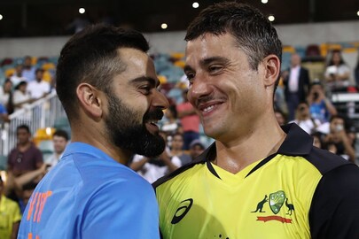 മെല്ബണ്: ഇന്നലെ നടന്ന ഇന്ത്യാ- ഓസീസ് മത്സരം മഴമൂലം തടസ്സപ്പെട്ടിരുന്നെങ്കിലും മത്സരത്തിനിടയിലെ ഒരു ചിത്രം സോഷ്യല് മീഡിയയില് വൈറലായിരുന്നു. ഇന്ത്യന് നായകന് വിരാട് കോഹ്ലിയും ഓസീസ് ഓള്റൗണ്ടര് മാര്കസ് സ്റ്റോയിനിസും തമ്മിലുള്ള സൗഹൃദ സംഭാഷണത്തിന്റെ ചിത്രം ഐസിസി തന്നെയായിരുന്നു ട്വിറ്ററില് പങ്കുവെച്ചത്.