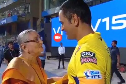ചെന്നൈ: ഇന്നലെ നടന്ന ചെന്നൈ സൂപ്പര് കിങ്സ് - മുംബൈ ഇന്ത്യന്സ് മത്സരത്തിനു ശേഷം ചെന്നൈ നായകന് എംഎസ് ധോണിയെ കാണാന് ഒരു വിശിഷ്ട അതിഥിയും എത്തിയിരുന്നു. മത്സരം മുഴുവന് കണ്ടശേഷം താരത്തെ കാണാനായി കാത്തിരുന്ന വൃദ്ധയായ ആരാധിക പ്രിയതാരത്തെ മൈതാനത്തെത്തി കണ്ടശേഷമാണ് ഗ്രൗണ്ടില് നിന്നും മടങ്ങിയത്.