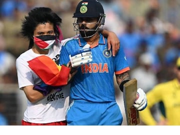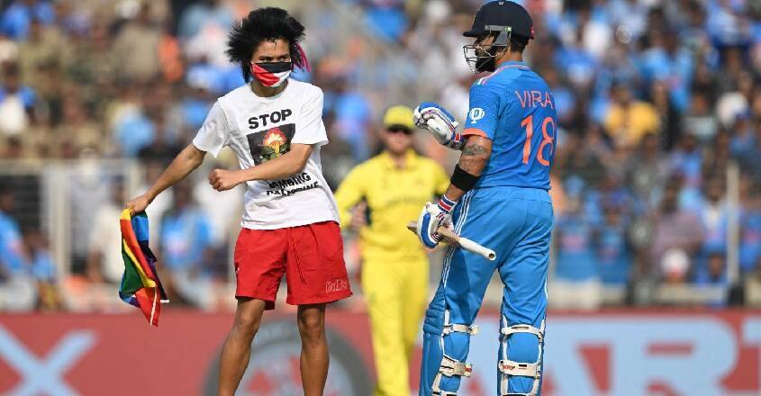 ലോകകപ്പ് ഫൈനലിനിടെ പലസ്തീന് അനുകൂല പ്രതിഷേധവുമായി യുവാവ് ഗ്രൌണ്ടിൽ കോലിയെ ആലിംഗനം ചെയ്തു