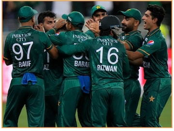 154 റണ്സ് വിജയലക്ഷ്യവുമായി മറുപടി ബാറ്റിങ്ങിനിറങ്ങിയ പാകിസ്താന് വേണ്ടി ഓപ്പണര്മാരായ ബാബര് അസമും മുഹമ്മദ് റിസ്വാനും സ്വപ്നതുല്യമായ തുടക്കമാണ് കാഴ്ചവെച്ചത്. ആദ്യ ഓവര് തൊട്ട് ആക്രമിച്ച് കളിച്ച ഇരുവരും 5.4 ഓവറില് ടീം സ്കോര് 50 കടത്തി. റിസ്വാനായിരുന്നു കൂടുതല് അപകടകാരി. 11ാം ഓവറില് ബാബര് അസം അര്ധസെഞ്ചുറി നേടി. 38 പന്തുകളില് നിന്നാണ് പാക് നായകന് അര്ധശതകം നേടിയത്. ടൂര്ണമെന്റിലെ ബാബറിന്റെ ആദ്യ അര്ധസെഞ്ചുറി കൂടിയാണിത്. അതുവരെയുള്ള എല്ലാ മത്സരങ്ങളില് നിന്നുമായി ബാബര് വെറും 39 റണ്സ് മാത്രമായിരുന്നു നേടിയിരുന്നത്. 11.4 ഓവറില് റിസ്വാനും ബാബറും സെഞ്ചുറി കൂട്ടുകെട്ട് പടുത്തുയര്ത്തി. വെറും 73 പന്തുകളില് നിന്നാണ് ഇരുവരും 100 റണ്സ് അടിച്ചെടുത്തത്.
